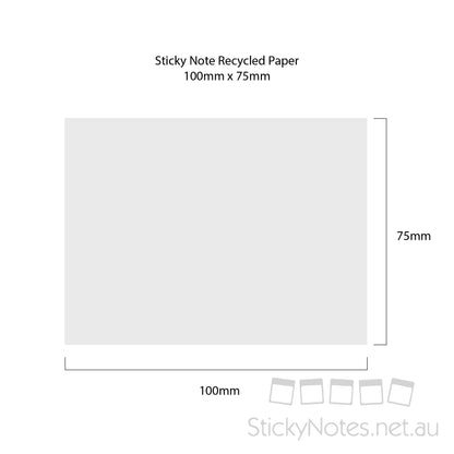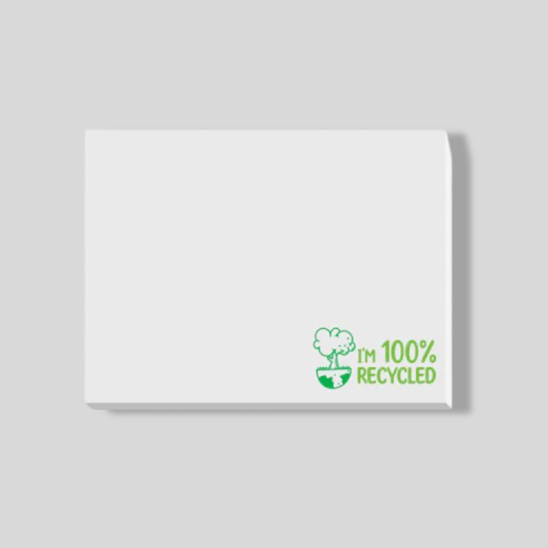 100 x 75mm Eco Paper Sticky Notes are the best promotional products because it can be customised with your company logo or design. It is also made from recycled materials, making it very friendly to the environment. These Eco Paper Sticky Notes have different colours to choose from - Recycled White (default colour), Recycled Canary Yellow, Recycled Kraft.