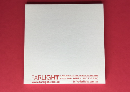 The price includes the cost of the full-colour print image or wording, but does not include GST. Printing is done in Australia and product(s) can only be delivered to customers within Australia. To make a maximum visual impact, the products clean-white paper can be customized with any full-colour image or wording. We do, however, recommend that the imprint area be no larger than 50% of the page size so that there is maximum writing space for the end-user. These useful sticky note pads contain a backing paper as the last page and an adhesive strip that can be positioned on any one side of the sticky note pad.