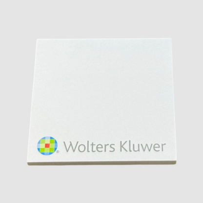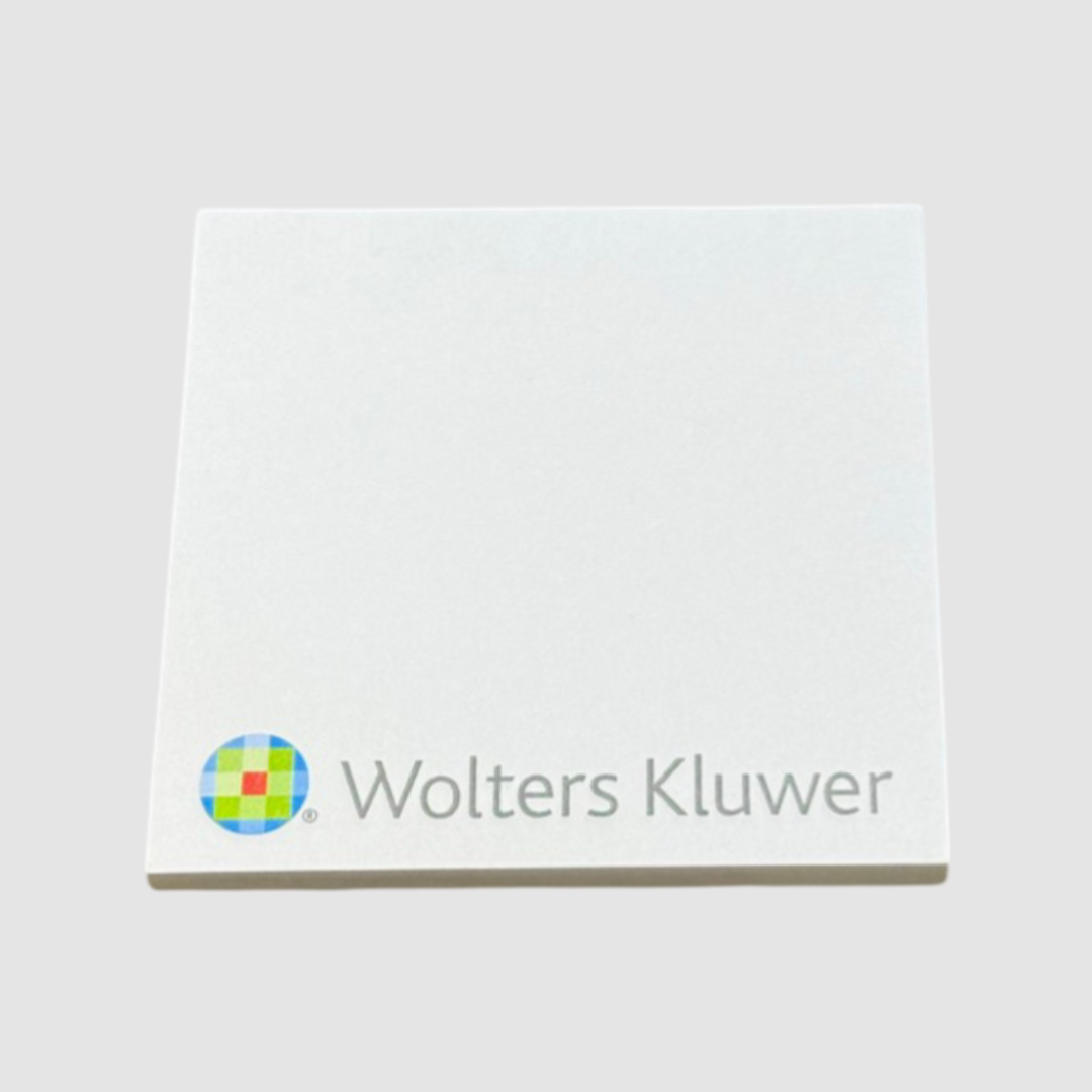 We do, however, recommend that the imprint area be no larger than 50% of the page size so that there is maximum writing space for the end-user. These useful sticky note pads contain a backing paper as the last page and an adhesive strip that can be positioned on any one side of the sticky note pad.