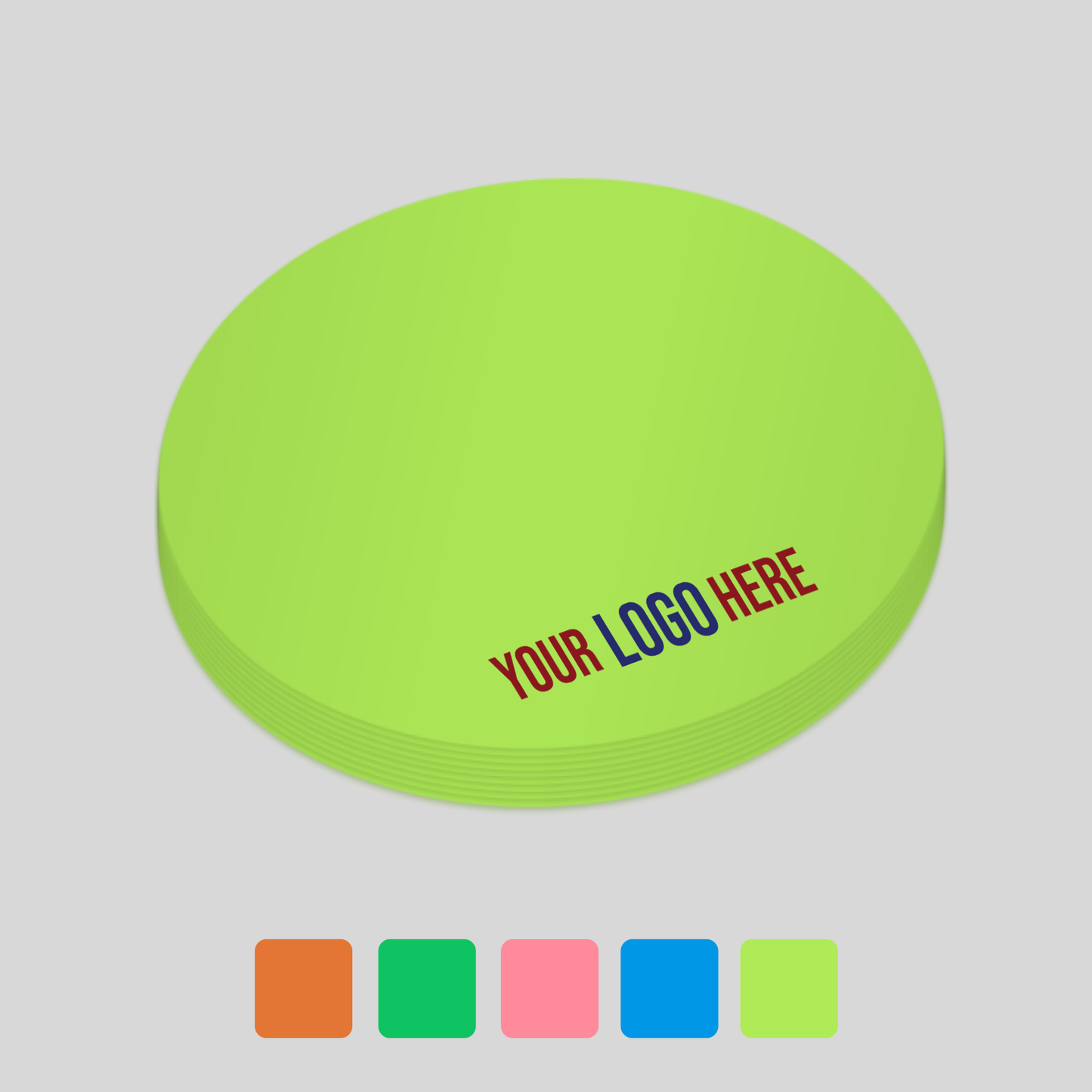 Buy promotional sticky notes in the shape of an Oval. These custom shaped sticky notepads are cut from a rectangle sized sticky note measuring: 10 x 7.5cm. Our product is made and custom printed in Australia.