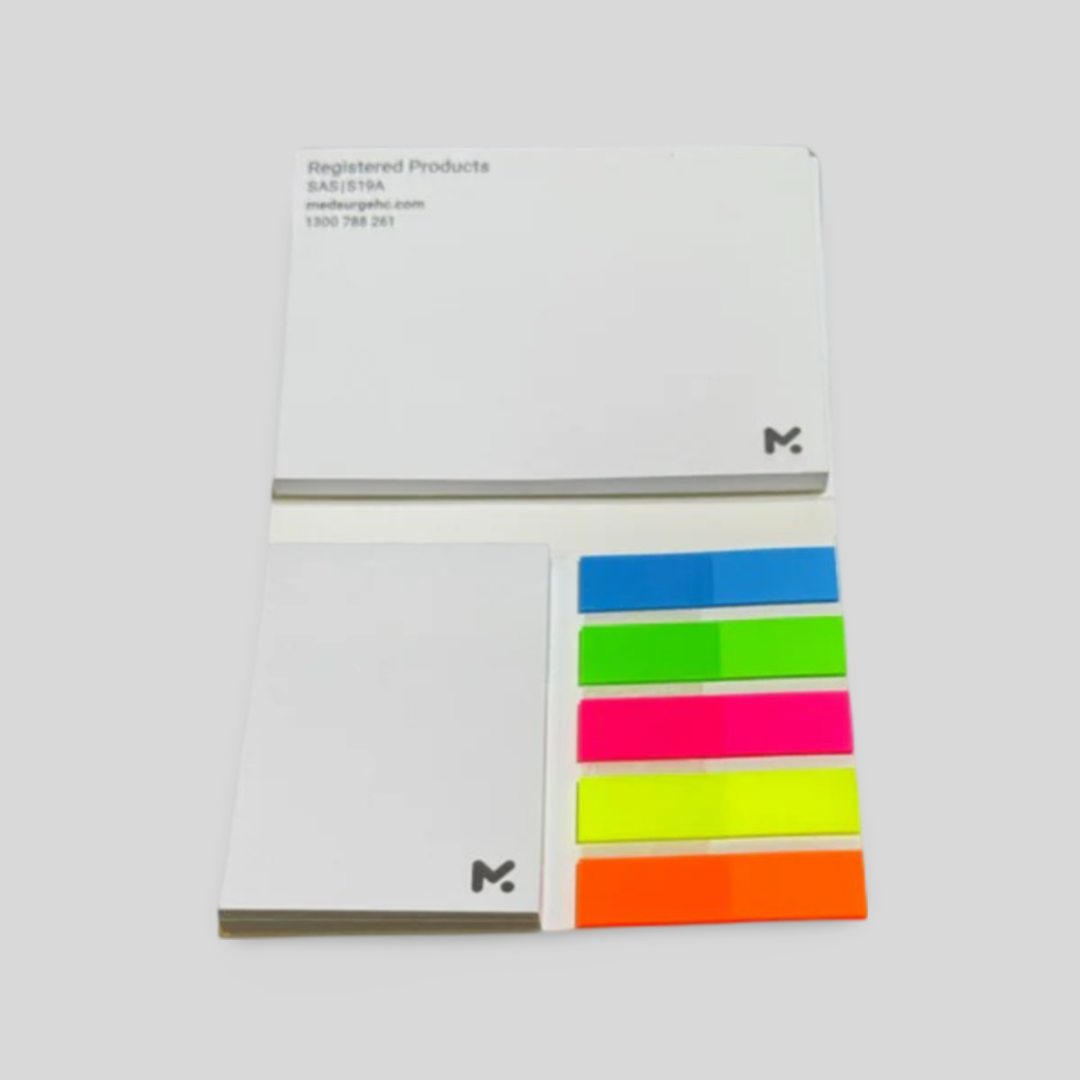 The minimum order for sticky notes is 250 units. Pricing includes 1 colour printing on the pads. Sticky notes are supplied at affordable prices for bulk orders. Delivery is a fast 1 week turnaround time for delivery within Australia.