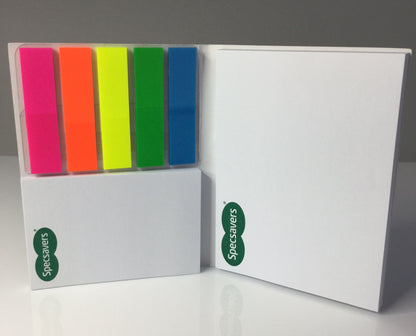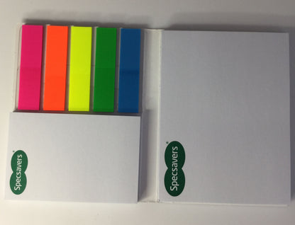 13 x 45 mm for the set of 5 coloured sticky note flags