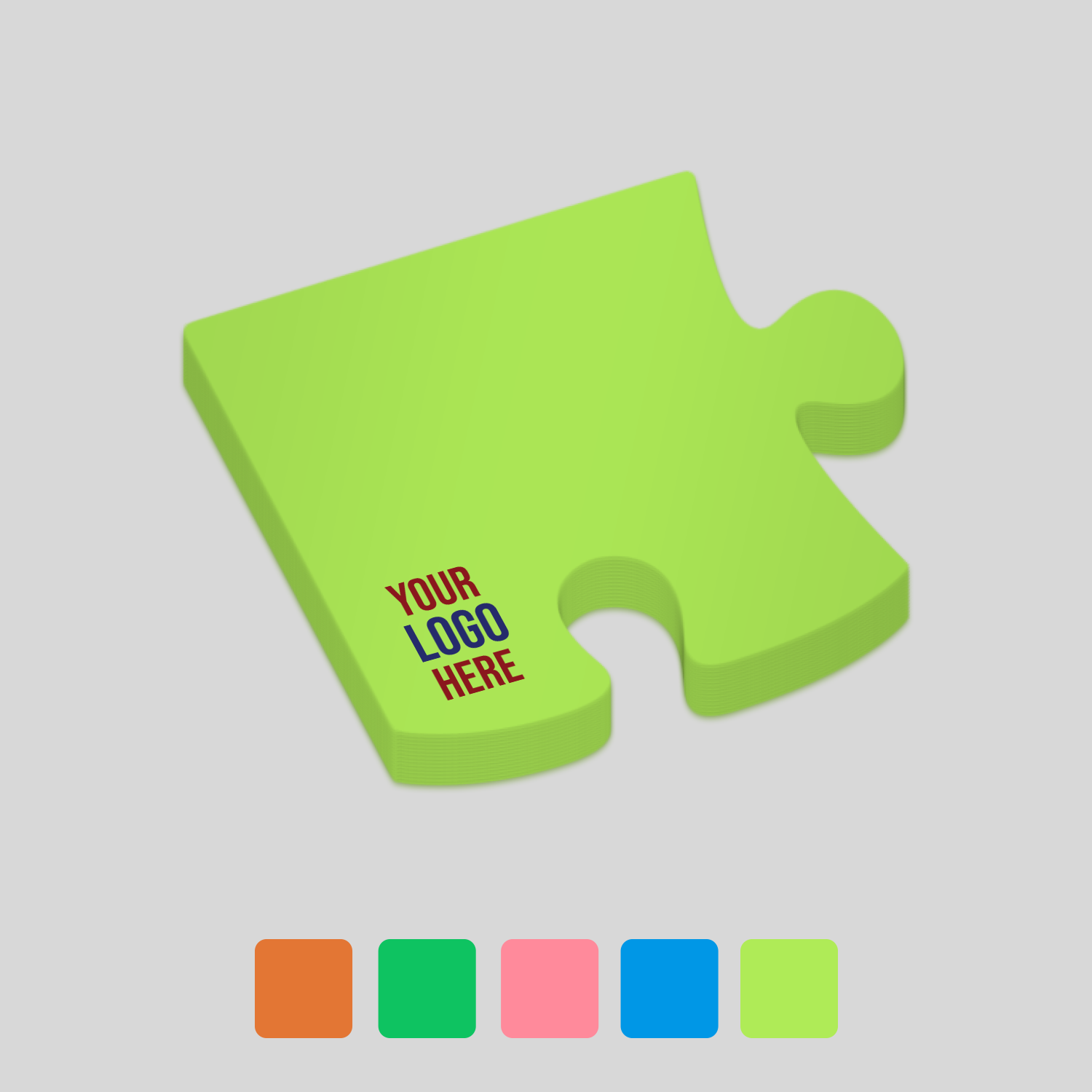Buy promotional sticky notes in the shape of a Puzzle. These custom shaped sticky notepads are cut from a rectangle sized sticky note measuring: 9.0 x 6.9cm. Our product is made and custom printed in Australia.